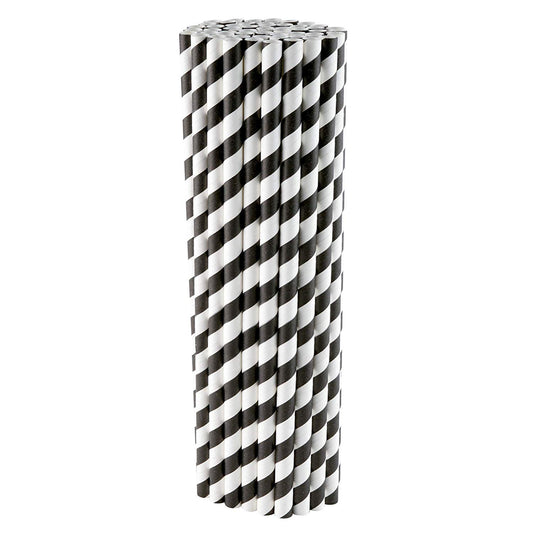 250 Black/White Paper Straws - 6mm x 200mm (8")