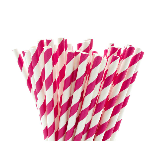 250 Pink/White Paper Straws - 6mm x 200mm (8")