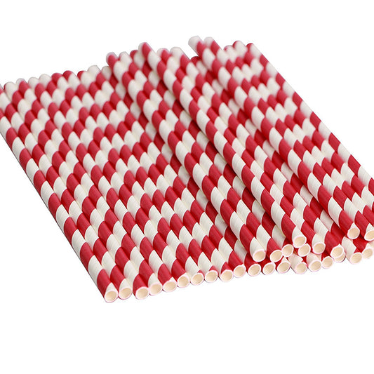250 Red/White Paper Straws - 6mm x 200mm (8")
